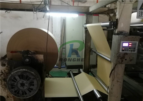 黃色離型紙復合,客戶用途包裝晶片。要求離型紙復合pe膜,再切片使用。